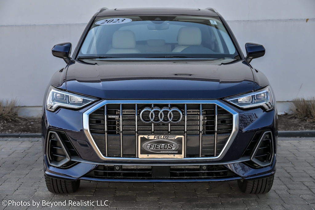 Blue 2023 Audi Q3 Premium Plus S Line quattro quattro 8-Speed Automatic with Tiptronic 2.0L 4-Cylinder TFSI, 12.3 Audi Virtual Cockpit Plus Screen, Adaptive Cruise Assist w/Lane Guidance, Alarm w/Motion Sensor, Alexa Integration, Audi Advanced Key, Audi Connect PLUS, Audi MMI Navigation Plus, Auto-Dimming Power-Folding Exterior Mirrors, Convenience Package, Driver Seat Memory, Frameless Auto-Dimming Interior Mirror w/Compass, LED Interior Lighting Package, LED Interior Lighting Plus Package, Premium Plus Package, SiriusXM w/360L, Sonos Premium Sound System w/3D Sound, Stainless Steel Trunk Sill, Technology Package, Top View Camera System, Traffic Sign Recognition, Wheels: 19 5-Double-Spoke Dynamic Design, Wireless Apple CarPlay/Android Auto, Wireless Phone Charging Pad.
