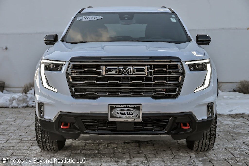 Summit White 2024 GMC Acadia AT4 AWD 8-Speed Automatic 2.5L DOHC, AWD, Forest Storm W/Mahogany Accents Cloth, 6-Way Power Front Passenger Seat Adjuster, 7-Passenger Seating (2-2-3 Seating Configuration), 8-Way Power Driver Seat Adjuster, Active Cruise Control, Apple CarPlay/Android Auto, Bose Performance 12-Speaker System w/Sub-woofer, Driver 4-Way Power Lumbar Seat Adjuster, Front Passenger 4-Way Power Lumbar Seat Adjuster, Heated Driver & Front Passenger Seats, Wheels: 18" x 8" Dark Machined Aluminum.