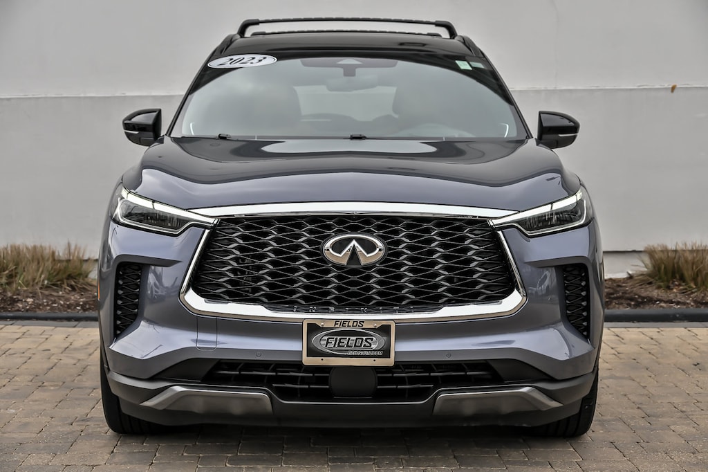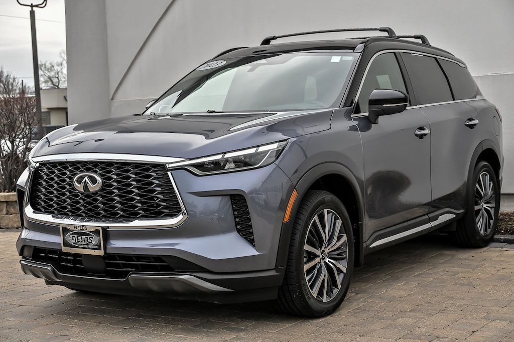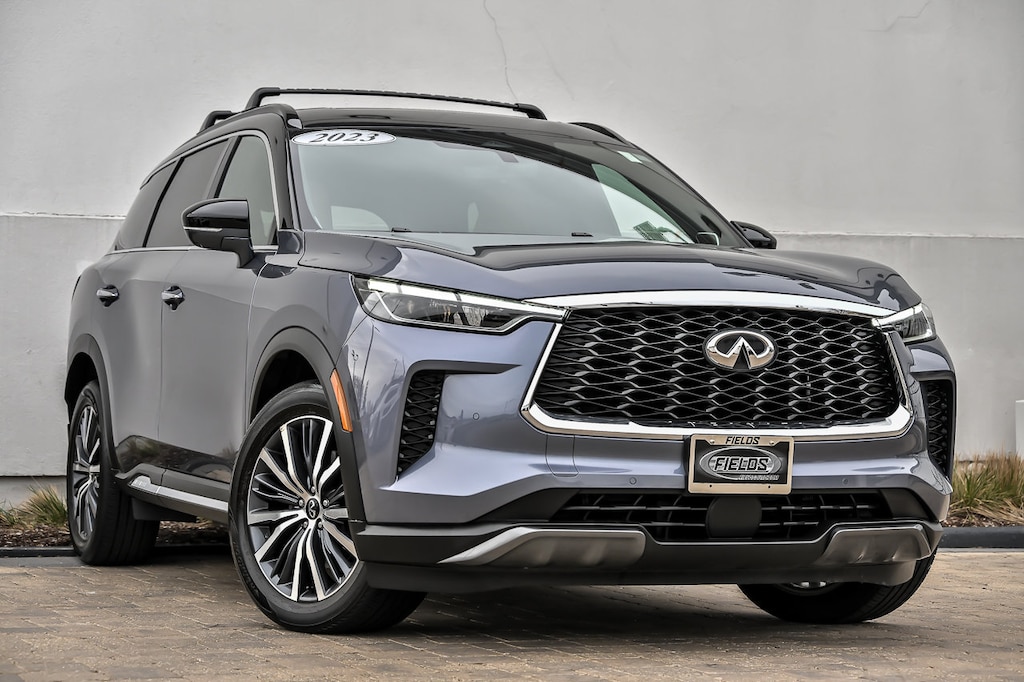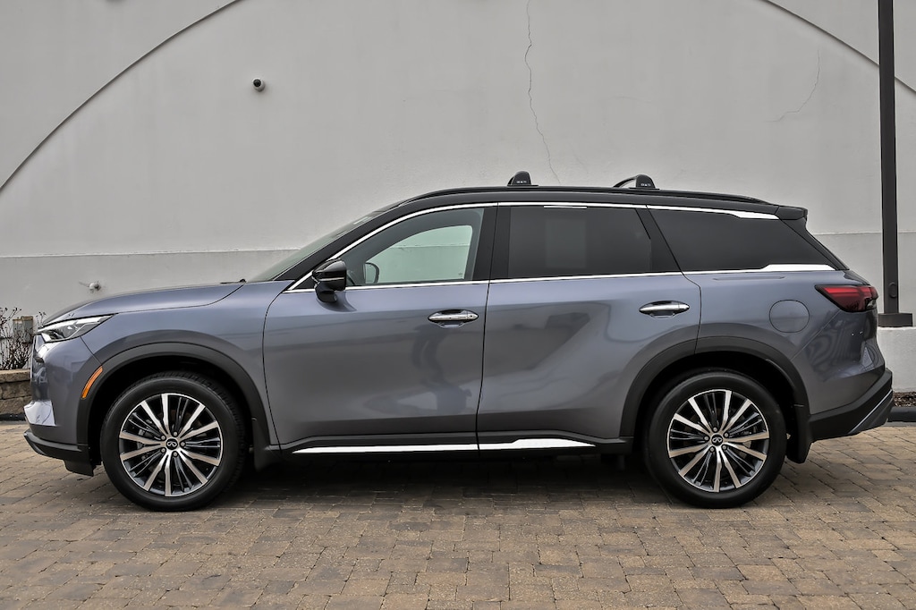 Moonbow Blue/Black Obsidian 2023 INFINITI QX60 Autograph AWD 9-Speed Automatic 3.5L V6, 3rd row seats: bench, Bose Performance Series 17-Speaker Sound System, Cargo Mat (Reversible), Cargo Package, First Aid Kit, Illuminated Kick Plate, Lighting Package w/o Running Boards Installed, Power moonroof, Ventilated front seats, Wheels: 20" x 8J Luxury Machined Aluminum Alloy.